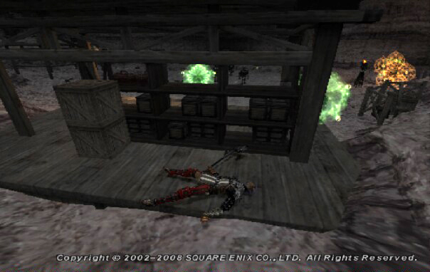 要塞でもやっぱり崋山先生に1500近くダメージ食らって、地面に伸びる図。