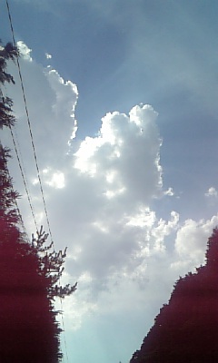 我が携帯のカメラは空を撮るといつも赤い色が混じる。ちぇっ。